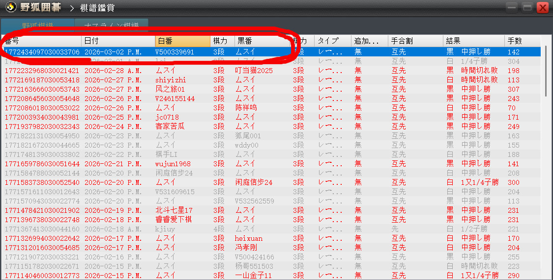 すると、対局データの一覧が出てきます。