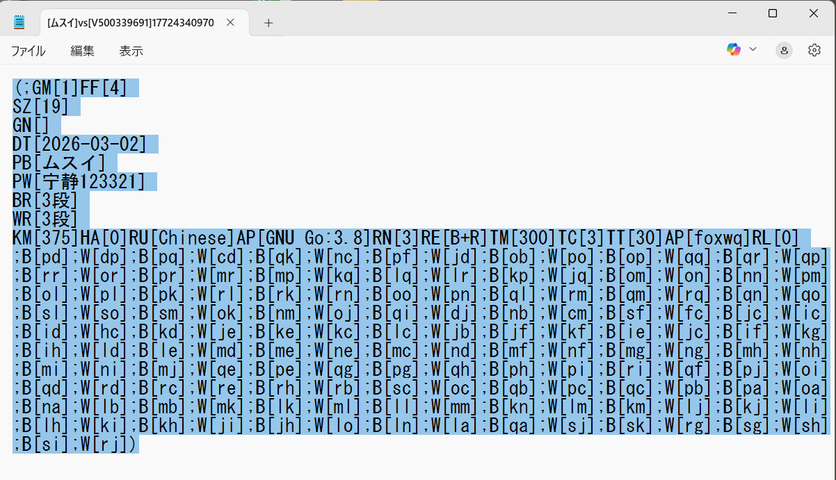この文字列が棋譜データです。