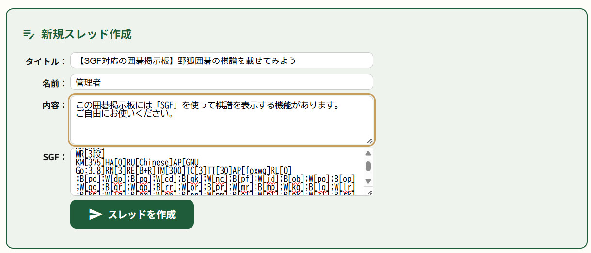 これで掲示板に「野狐囲碁の棋譜」を載せることができました。